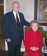 The Gowing Funeral Home is situated in the town of Orrick, Missouri. The present home was the former home of Claude Donovan, one of the early cashiers of the Citizen’s Exchange Bank, and his family. In 1920 the Donovan family moved to Liberty, Missouri, and the home was sold to Fred S. Rowland, undertaker. In 1927 the undertaking business and home were sold to Mr. and Mrs. C. V. Gibson. They operated the home and business until 1944, when it was sold to the funeral firm of Brothers-Good. A short time later, Blain W. Good bought out Mr. Brothers and the home was simply the Good Funeral Home. In 1959 Mr. Good sold the business to Wilbur McAfee. In 1962 Sammy L. Gowing acquired the business from Mr. McAfee and it has since been known as the Gowing Funeral Home. The late Sammy and Betty Gowing are pictured above.